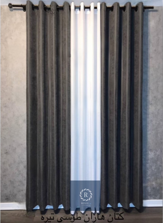 پرده اماده کتان هازان طوسی تیره