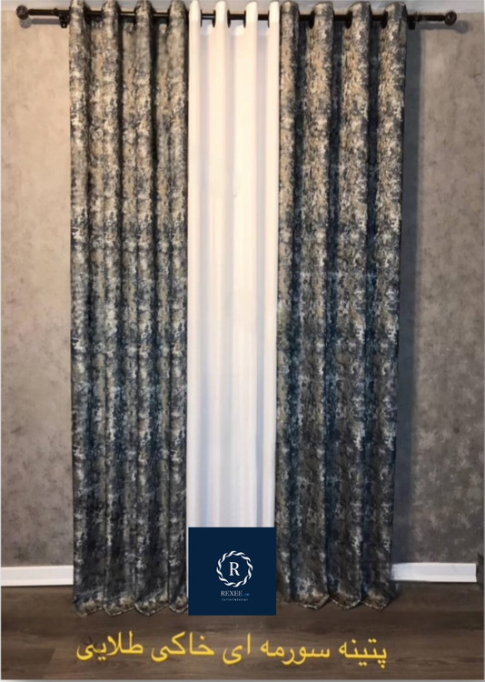 پرده مخمل پتینه سورمه ای خاکی طلایی