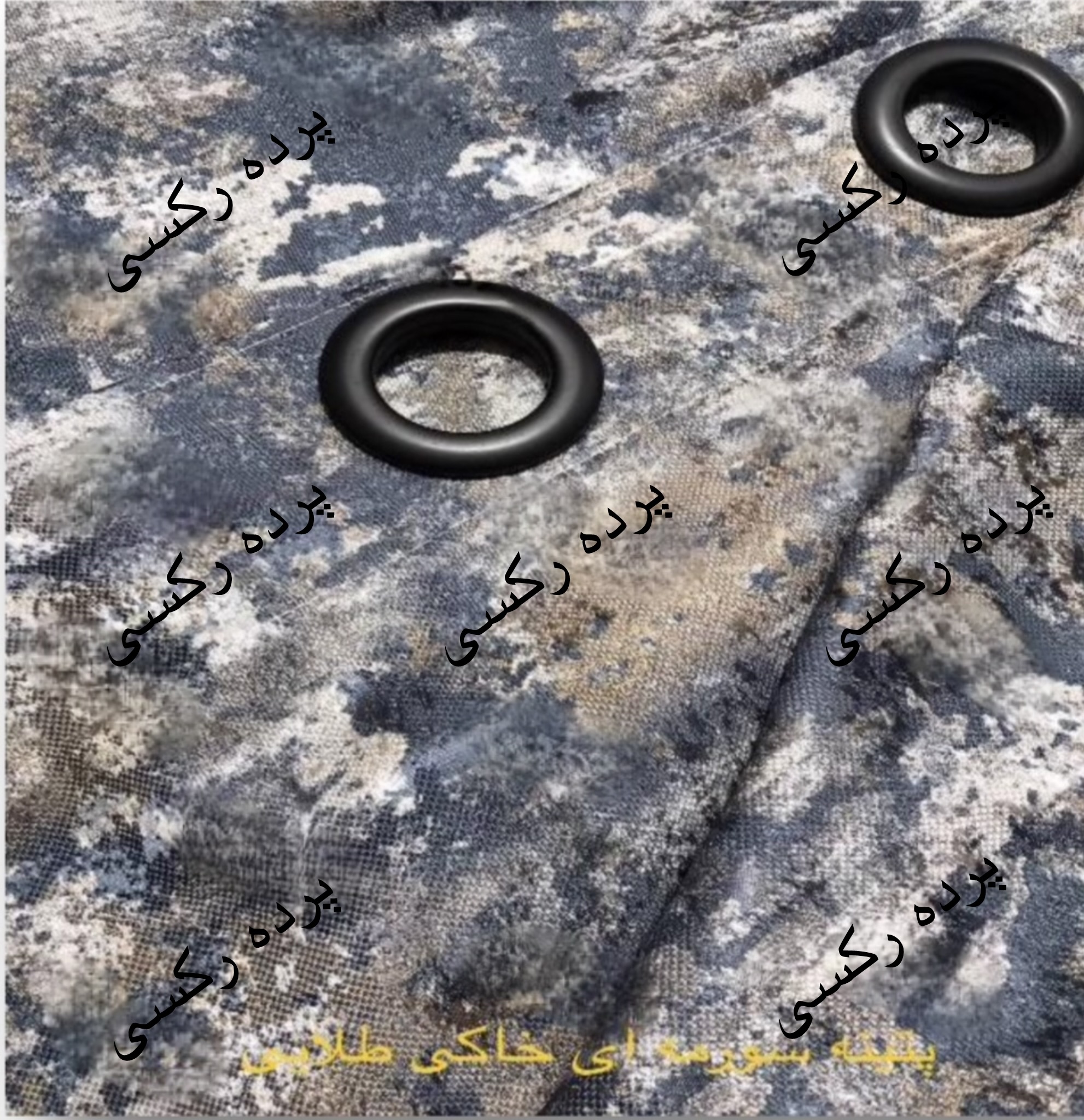 پرده مخمل پتینه سورمه ای خاکی طلایی